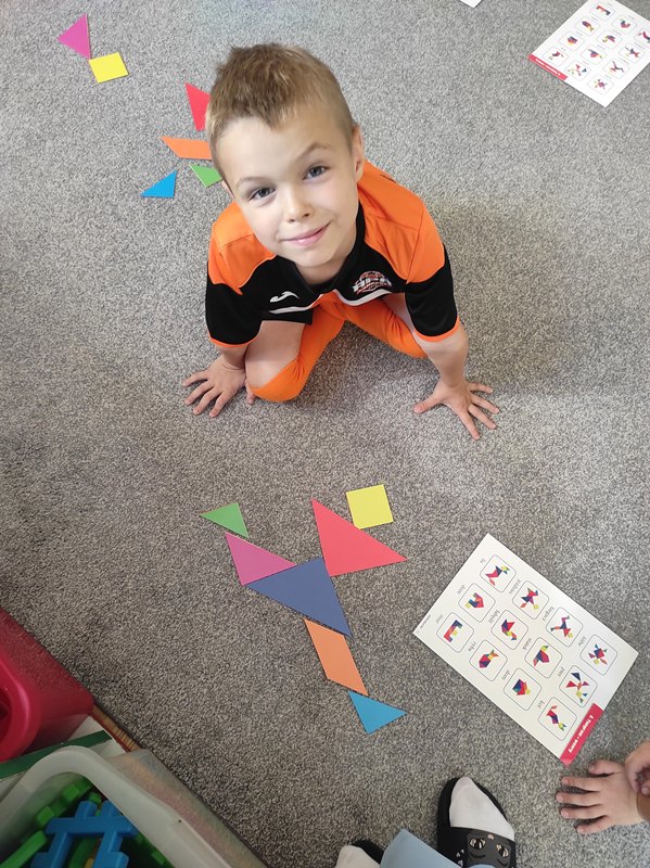 W dniu 9 września 2025 r. dzieci z oddziału przedszkolnego odkrywały świat tangramów — chińskiej układanki rozwijającej wyobraźnię, logiczne myślenie i spostrzegawczość. Przedszkolaki z zapałem tworzyły zwierzątka, domki, statki i wiele innych kształtów. Każdy układ był wyjątkowy i pokazał, jak wiele radości daje kreatywne odkrywanie. Brawo dla naszych małych konstruktorów!