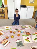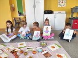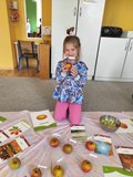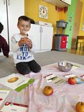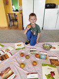 We wtorek 23 września 2025 r. na zajęciach dzieci odkrywały uroki nowej pory roku. Poznawały owoce i warzywa — rozpoznając je po dotyku i smaku, dowiedziały się, jakie kolory królują jesienią oraz jaka pogoda towarzyszy nam o tej porze roku. Wspólnie uczyły się też piosenki o jesieni, a na zakończenie każdy wykonał swoją pracę plastyczną — panią Jesień, pięknie pokolorowaną kredkami. Na powitanie tej nowej pory roku dzieci otrzymały także pyszne jabłuszka. Było kolorowo, radośnie i bardzo jesiennie!