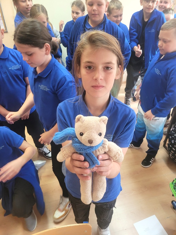 W piątek 26 września 2025 r. do klasowej społeczności dołączył Franek — miś, który wraz ze swoim pamiętnikiem będzie wędrował po naszych domach. W ten sposób chcemy uczyć się pisania dłuższych form wypowiedzi, a nasz pluszowy przyjaciel pomoże nam w tym, abyśmy bawiąc się, uczyli. Dzisiaj Franka — nowego przyjaciela klasy IV, zabrał Antek, a Ania postanowiła wziąć wymiary maskotki i uszyć jej ubranko.