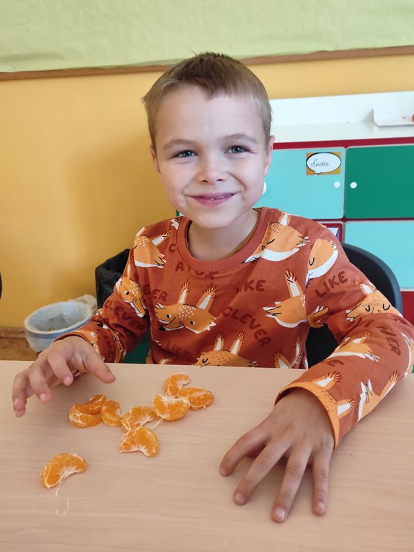 Dzieci poznały owoce i warzywa w tym kolorze oraz dowiedziały się, jakie zdrowotne właściwości ma marchewka — nasza bohaterka dnia. Nie zabrakło też nauki przez zabawę, ponieważ podczas zajęć matematycznych przedszkolaki przeliczały, dodawały i porównywały te dary natury bogate w witaminy i błonnik.