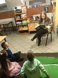 Dnia 13 i 14 listopada 2025 r. w ramach cyklu zajęć czytelniczych "Książki lokalnych twórców" realizowanych w najmłodszych zespołach klasowych bibliotekarka szkolna p. Monika Grzywacz czytała w oddziale przedszkolnym utwór naszej trzcianeckiej pisarki p. Karoliny Kubilus. Autorka od lat tworzy literaturę nie tylko dla dzieci. Wiele lat była dyrektorem Szkoły Podstawowej w Łomnicy. Gościliśmy literatkę u nas na spotkaniu autorskim w 2023 r.