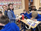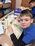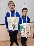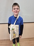 Jak zapamiętać wygląd bohatera lektury? Może namalować torbę z jego wizerunkiem? My w piątek 21 listopada 2025 r. klasie IV tak zrobiliśmy i już wiemy, że pan Kleks miał kolorową czuprynę, mieniącą się wszystkimi kolorami tęczy, piegi, binokle na nosie przekrzywiającym się w zależności od pogody, pomarańczowe wąsy i czarną jak smoła brodę. Na naszych torbach widać też czekoladowy surdut, cytrynową kamizelkę i spodnie jak balon.