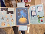 Listopad 2025 także w klasach VIII upłynął pod znakiem omówienia lektury. I to nie byle jakiej, bo klasyki literatury — "Małego Księcia" Antoine de Saint-Exuperégo. Książka ta pozwoliła nam zagłębić się w refleksjach na temat życia, miłości i przyjaźni. Cytaty pochodzące z opowieści zostały przetłumaczone na wiele języków i są przywoływane w wielu sytuacjach jako kwintesencja rozważań egzystencjalnych. My także odszukiwaliśmy na kartach "Małego Księcia" ciekawych myśli. Efektem tego były stworzone przez nas lapbooki, chmurki z cennymi sentencjami oraz kartki pocztowe z wizerunkiem bohatera. Tak powstała nasza literacka alejka — korytarz przy sali języka polskiego ozdobiły nasze prace. Bawimy się lekturami, aby ich omawianie nie stało się przykrym obowiązkiem.