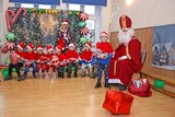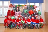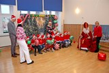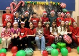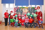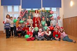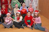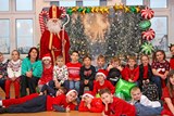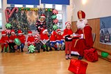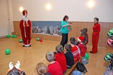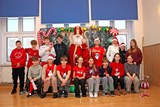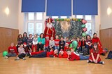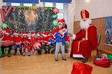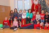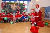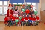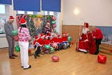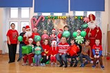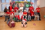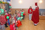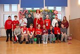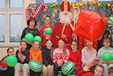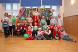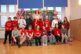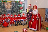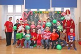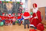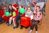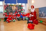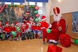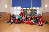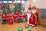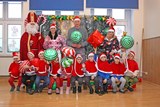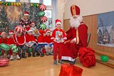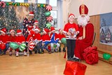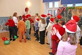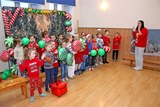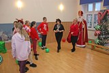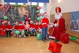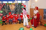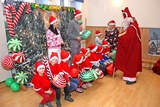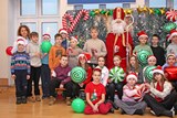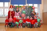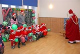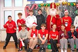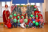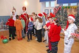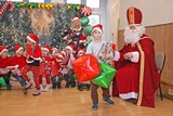 W międzyczasie cała społeczność szkolna, niezależnie od poziomu nauczania, kolejno od godz. 10.45 stanęła w kolejce do mikołajkowych zdjęć. Nieustający błysk lampy fotograficznej, sterty świątecznych gadżetów, reniferowe czapki oraz czerwone mikołajkowe nakrycia głowy w połączeniu ze specjalnym zimowym, świątecznym tłem do pozowania sprawiały, że nawet najbardziej powściągliwi z uśmiechem prezentowali swe wdzięki. Św. Mikołaj z nami pozował do fotografii, a potem obdarował nas niespodziankami. Dodatkowo z rąk Rady Rodziców naszej szkoły otrzymaliśmy aromatyczny popcorn, rozsiewający wszędzie miły zapach.