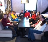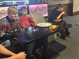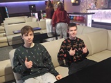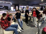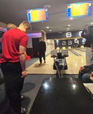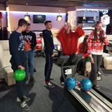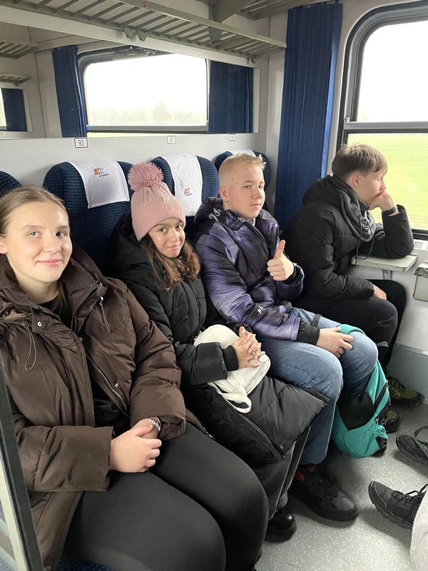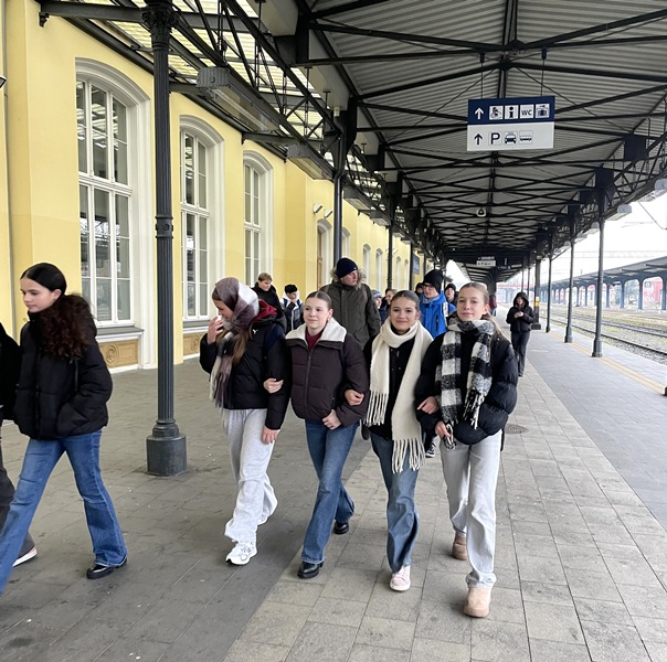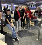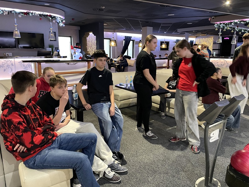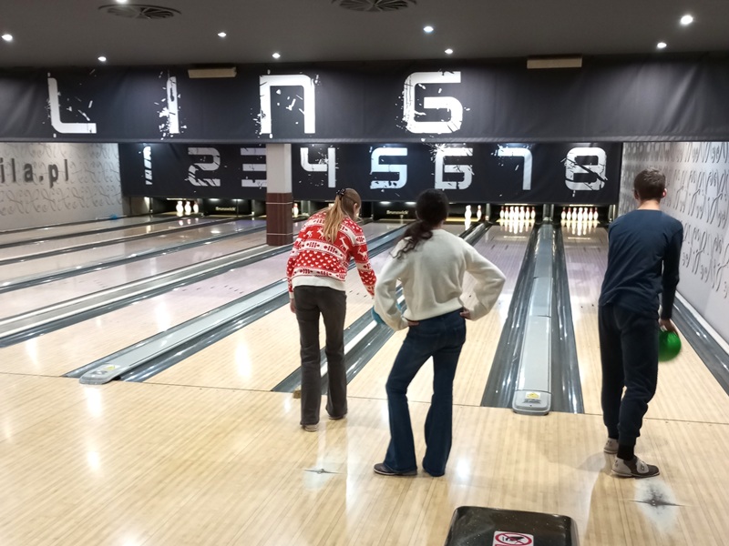 Z kolei klasy VII–VIII wybrały podróż pociągiem. Dojście na stację kolejową było zaplanowane na godz. 8.55. Na dworcu niespodziewanie pojawił się prawdziwy św. Mikołaj, niosąc ze sobą aurę tajemniczości oraz radosnego ciepła, jakby wysiadł prosto z innego składu relacji Mira – Trzcianka. Po krótkim spotkaniu z nami, wręczeniu upominków, wyruszył dalej, aby odwiedzić pozostałe zespoły klasowe i obdarzyć je równie niesamowitą chwilą tylko że już w auli szkolnej. Weszliśmy w atmosferę przygody znaną z powieści podróżniczych. Gdy o godz. 9.00 ruszyliśmy w kierunku Piły, poczuliśmy prawdziwe dreszcze wyprawy. Dla nas podróżujących cel pozostawał jasny: kręgielnia Bowling Rodło. Po dotarciu na miejsce toczyliśmy zawodowe kule po torach, a każdy rzut niósł w sobie wielkie pokłady rywalizacji oraz świątecznej beztroski. Nie obyło się bez żartów — przy niektórych rzutach kula znikała w rynnie szybciej niż mikołajowe pierniki chętnie przez nas pochłaniane zazwyczaj z tej okazji. Powrót do Trzcianki około południa zamknął tę dynamiczną część dnia.