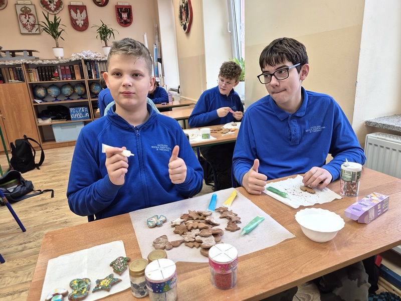 Po cyklu lekcji o legendach w klasie VI przechodzimy do tematyki historycznej oraz tradycji związanych z naszym krajem. Jedną z takich jest przedświąteczne przygotowywanie korzennych ciasteczek — pierników. A że na języku polskim wszystko wiąże się z kształceniem umiejętności pisania, to i tym razem utrwalamy formę wypowiedzi, jaką jest instrukcja, a ściślej — jedna z jej odmian: przepis kulinarny. Lubimy takie pyszne lekcje jak chociażby tę, która odbyła się w dniu 10 grudnia 2025 r.