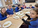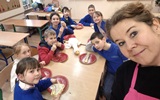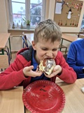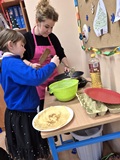 Podczas zajęć literacko-kulinarnych w dniu 15 stycznia 2026 r. uczniowie czytali tekst o naleśnikowych poradach Cecylki Knedelek. Poznawali uważnie fragmenty opowiadania, omawiali treść oraz zwracali uwagę na wskazówki dotyczące przygotowania naleśników. Następnie, kierując się poznanymi poradami, wspólnie przystąpili do części praktycznej. Dzieci z zaangażowaniem przygotowywały ciasto i smażyły naleśniki, łącząc czytanie ze zrozumieniem z działaniem kulinarnym oraz rozwijając współpracę i samodzielność.
