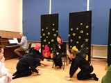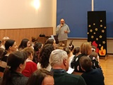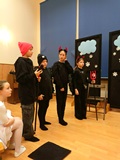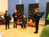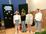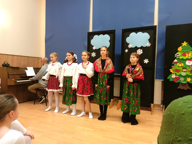 Całość zakończyliśmy wspólnym kolędowaniem, niosąc w głosach radość ze wspólnego przeżywania niedawno obchodzonego Bożego Narodzenia. Aula szkolna długo rezonowała śmiechem, śpiewem i muzyką.