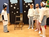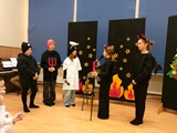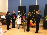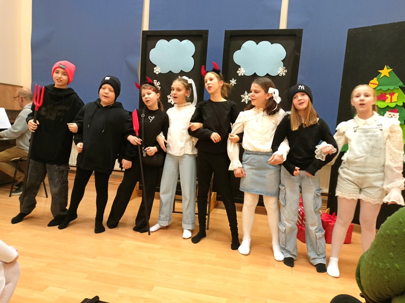 We wtorkowe popołudnie 20 stycznia 2026 r. aulę szkolną wypełniło światło, dźwięk oraz zbiorowe oczekiwanie na występy aktorski i taneczny. Zebraliśmy się wspólnie, aby kolędować, lecz szybko okazało się, że najpierw nastąpiło przedstawienie z dużą dozą muzyki w wykonaniu p. Bartosza Śliwińskiego, nasycone emocją, ruchem i symbolicznym przekazem. Scena zamieniła się w przestrzeń dialogu dobra ze złem, sacrum z codziennością, a widzowie zanurzyli się w opowieść, w której to tradycja spotkała się ze współczesnością.