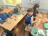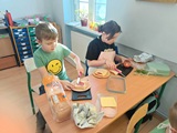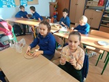 Na początku uczniowie powtórzyli znajomość zagadnień dotyczących piramidy zdrowia, następnie przygotowali plany wykonania zdrowych kanapek, a na zakończenie samodzielnie wykonali pyszne i zdrowe tosty. Zajęciom towarzyszyło dużo radości, zaangażowania i wspólnej zabawy.
