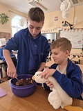 W czwartek 22 stycznia 2026 r. podczas zajęć literacko-kulinarnych dzieci z dużym zainteresowaniem wysłuchały opowieści księdza Barnaby o panach: Porządku i Bałaganie. Historia stała się punktem wyjścia do rozmowy o tym, jak ład, harmonia i dbałość o otoczenie wpływają na nasze samopoczucie oraz dlaczego bombonierka może kojarzyć się z czystym, uporządkowanym pokojem. W części praktycznej wspólnie przygotowaliśmy blok czekoladowy — słodką bazę naszego własnego, pysznego zestawu słodkości, łącząc literacką refleksję z kulinarną radością tworzenia.