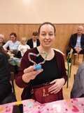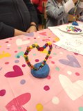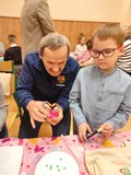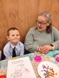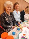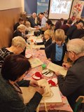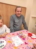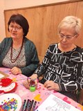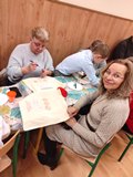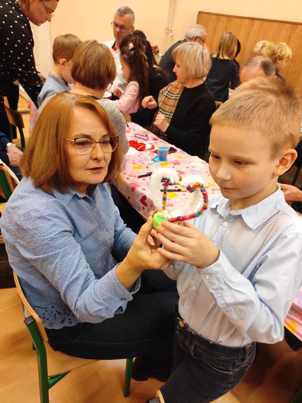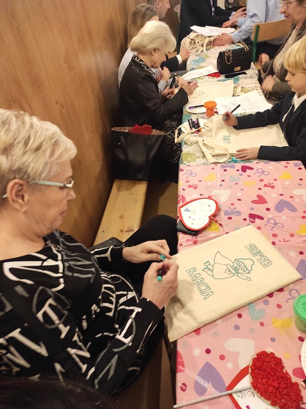 Kolejnym punktem spotkania były warsztaty plastyczne, podczas których najmłodsi wspólnie z seniorami wykonali dwie prace. Pierwszą z nich były torby ekologiczne, a drugą — serduszka ozdobione kolorowymi koralikami. Wspólne tworzenie sprzyjało rozmowom, śmiechowi i integracji pokoleń.