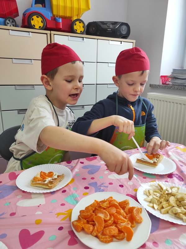 W piątek 30 stycznia 2026 r. dzieci z oddziału przedszkolnego wzięły udział w zajęciach kulinarnych. Przedszkolaki z wielkim zaangażowaniem robiły gofry, a następnie ozdabiały je bitą śmietaną i pysznymi dodatkami. Było dużo radości, uśmiechów i oczywiście smakowicie!