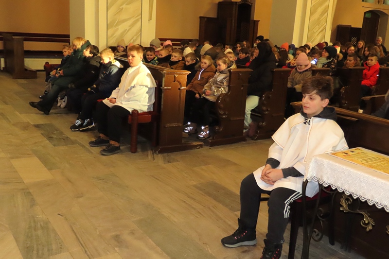 Homilia prefekta szkoły ks. Marcina Libery MS pulsowała treścią i znaczeniami ukrytymi w Ewangelii. Usłyszeliśmy o czasie oczekiwania na nadejście Mesjasza, rozumianym nie jako bezczynność trwania, lecz jako aktywny proces dojrzewania serca. Postać Symeona wybrzmiała w roli symbolu skutecznej cierpliwości — mającej sens i cel, przypominającej długodystansowy bieg, wieloletnie wypatrywanie Zbawiciela. Wypowiedź starca staje się dla współczesnych znakiem spełnionej obietnicy — dla nas nierzadko znużonych oczekiwaniem na dobro i pokój, szczególnie w epoce nadmiaru bodźców, przyspieszającej rytm życia i skracającej cierpliwość.