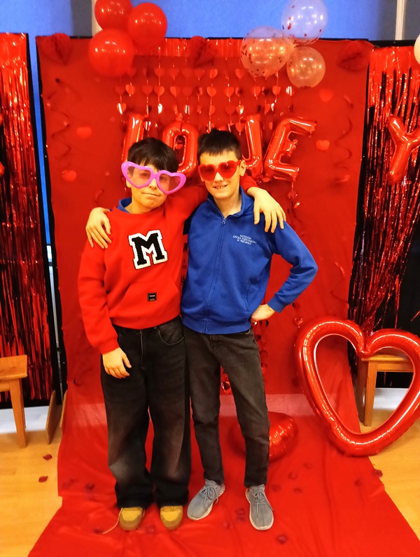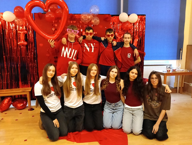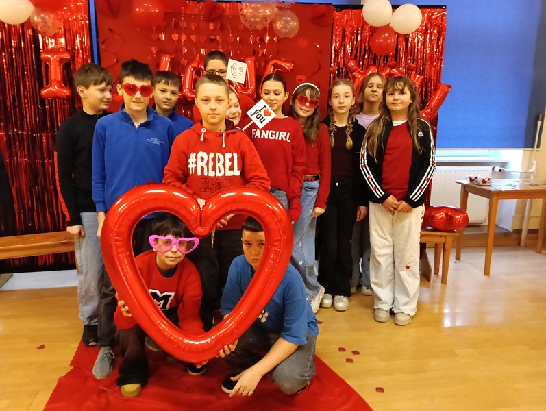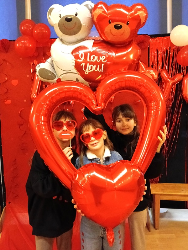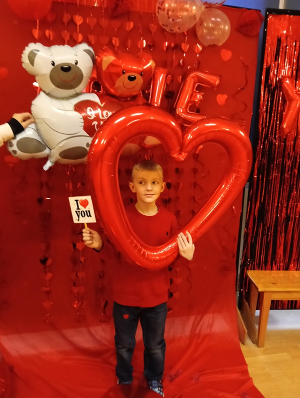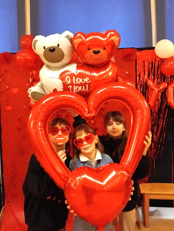 W piątek 13 lutego 2026 r. w przeddzień wspomnienia św. Walentego, patrona nie tylko zakochanych, ale i ludzi dotkniętych trudnymi chorobami natury psychicznej i neurologicznymi, celebrowaliśmy ten wyjątkowy czas w szkole. Samorząd Uczniowski przygotował atrakcyjną ściankę do zdjęć z różnymi ciekawymi gadżetami i pomysłami. Zarówno całymi klasami, jak i w pojedynczych zespołach uczniowie i nauczyciele pozowali do fotografii. Było bardzo zabawnie, uroczo i wesoło. Pozytywne i sympatyczne zwieńczenie tego dnia jest już za nami, a jutro już przyjdą upragnione ferie.