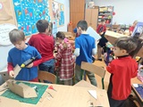 W piątek 13 lutego 2026 r. klasa II zamieniła salę lekcyjną w prawdziwą pracownię małych konstruktorów. Tego dnia uczniowie tworzyli niezwykłe budowle z kartonu, wykazując się ogromną pomysłowością i zaangażowaniem.