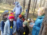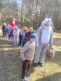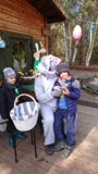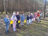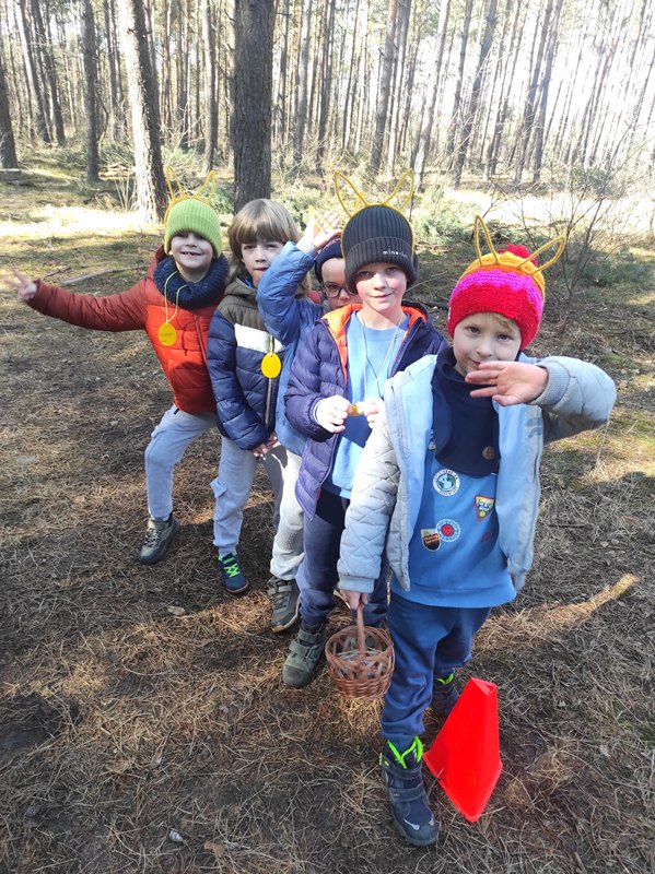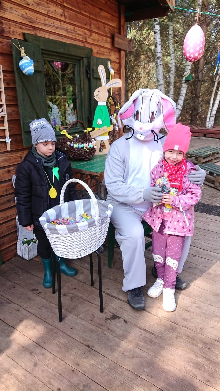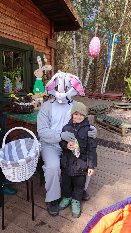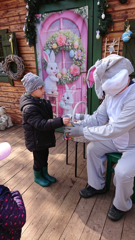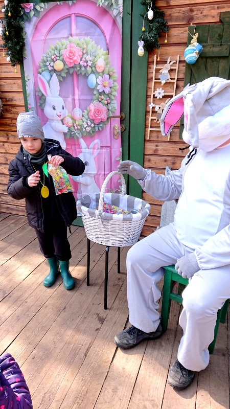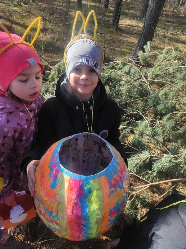 Na miejscu przywitała nas pani Małgorzata oraz wesoły zajączek, którzy przygotowali dla dzieci mnóstwo atrakcji. Przedszkolaki brały udział w zabawach w lesie — pokonywały tor przeszkód, uczestniczyły w konkurencjach sportowych, szukały wielkanocnego koszyka oraz ukrytych elementów puzzli. Z nich to wspólnie ułożyły piękną pisankę. Nie zabrakło też poszukiwań czekoladowych jajeczek, które sprawiły dzieciom wiele radości.