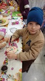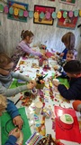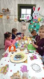 Po leśnych przygodach przenieśliśmy się do domku Jasia i Małgosi, gdzie dzieci ozdabiały wielkanocne jajka, rozwijając swoją kreatywność i zdolności manualne. Następnie czekał na wszystkich pyszny poczęstunek — ciepła herbatka oraz smakowite muffinki.