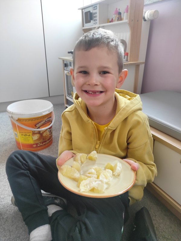 Na zakończenie wspólnie częstowaliśmy się bananami, cytryną oraz melonem. Dodatkową atrakcją była pyszna, orzeźwiająca lemoniada cytrynowa, która wszystkim bardzo smakowała.