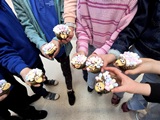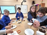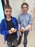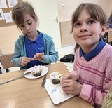 W czwartek 26 marca 2026 r. na zajęciach literacko-kulinarnych czytaliśmy opowiadanie o tym, jak Cecylka z Walerią oglądają chmurki. Historia ta zawierała wiele informacji przyrodniczych o rodzajach obłoków. Każdy z nich przypominał baranki biegające po niebie, co stało się inspiracją do naszych kulinarnych wytworów. Przygotowaliśmy właśnie baranki, które na koniec ze smakiem zjedliśmy.