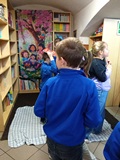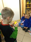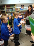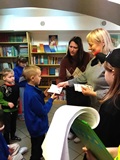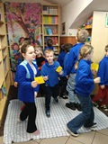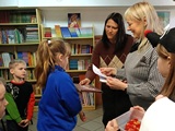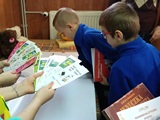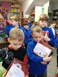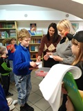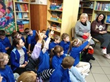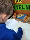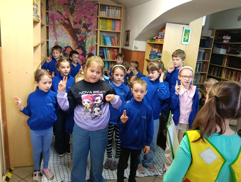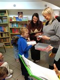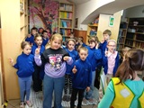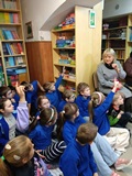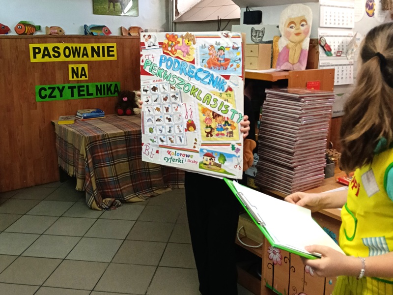 W piątek 27 marca 2026 r. w naszej bibliotece szkolnej odbyło się przyjęcie pierwszoklasistów w poczet nowych czytelników. Były przy tym obecne pani dyrektor szkoły Dorota Pawłowska oraz wychowawczyni klasy I pani Agnieszka Kapela. Bibliotekarka szkolna pani Monika Grzywacz powitała wszystkich i podała cel spotkania. Następnie obecne na spotkaniu asystentki z bajek — krecik i Pippi Pończoszanka, zaprezentowały wiersz o najważniejszych aspektach dzisiejszej uroczystości. Potem były zadania dla uczniów polegające na odnalezieniu karteczek z literami do ułożenia hasła "Biblioteka", odgadywanie wierszyków Jana Brzechwy, rozpoznawanie tytułów baśni i bajek, losowanie zagadek oznaczających postaci z utworów bajkowych i czytanie ich przez uczniów, następnie odgadywanie tytułów. Dzieci odpowiadały na zadawane pytania: "Co to jest biblioteka?", "Jak należy się zachowywać w bibliotece?", "Czym biblioteka różni się od księgarni?", "Jak należy dbać o książki?" i "Dlaczego czytanie książek jest takie korzystne i ważne?" Dzieci zgadywały też rymowanki recytowane i nawet śpiewane przez panią dyrektor szkoły, która pamięta jeszcze wierszyki ze swoich szkolnych lat.