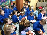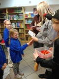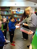 Na końcu naszego spotkania wszyscy poczęstowali się słodkościami. Składamy gratulacje naszym pierwszakom, którzy zasłużyli na miano nowych, pełnoprawnych czytelników.