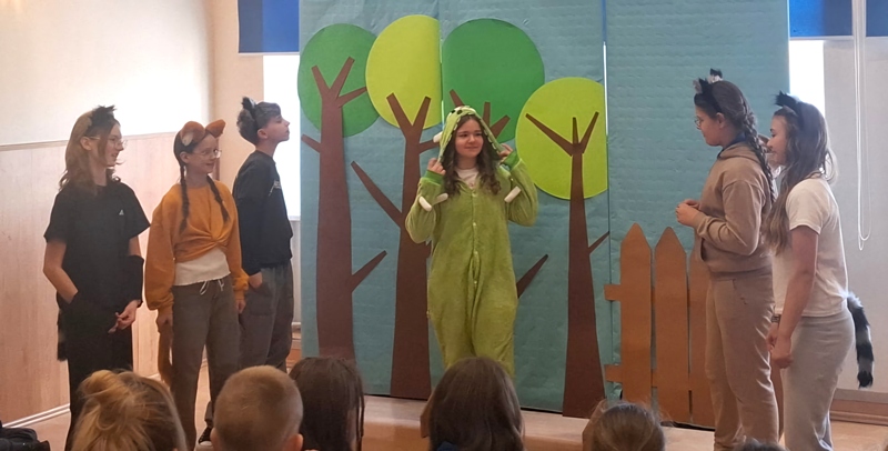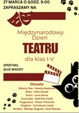 Dnia 27 marca 2026 r. obchodzimy Międzynarodowy Dzień Teatru. W naszej szkole to także Dzień Teatru Szkolnego. Z tej okazji uczniowie klasy VI przygotowali dla swoich młodszych kolegów krótkie przedstawienie w oparciu o tekst Melanii Kapelusz pt. "Zielony pies" oraz quiz wiedzy o teatrze. W ten sposób chcieliśmy zaakcentować nasze zainteresowanie sztuką dramatyczną oraz upowszechniać wiedzę o tej dziedzinie aktywności kulturalnej.