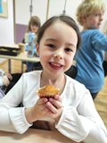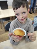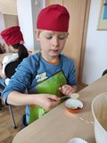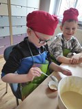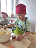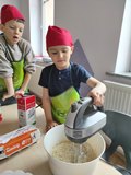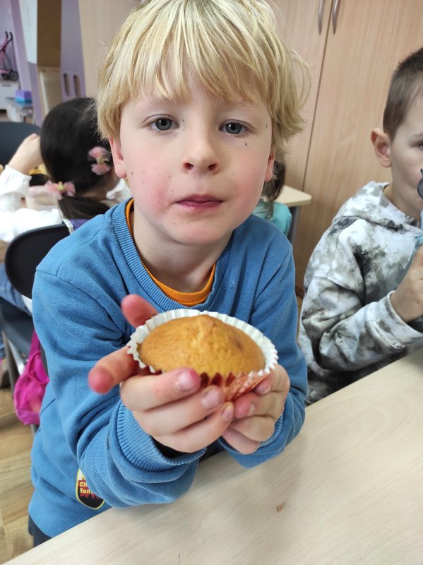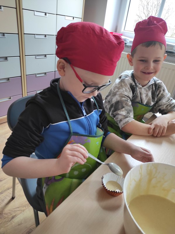 W poniedziałek 30 marca 2026 r. dzieci z oddziału przedszkolnego z okazji zbliżających się Świąt Wielkanocnych wzięły udział w zajęciach kulinarnych. Podczas spotkania z wielkim zaangażowaniem przygotowywały pyszne muffinki, ucząc się przy tym współpracy oraz rozwijając swoje umiejętności kulinarne.