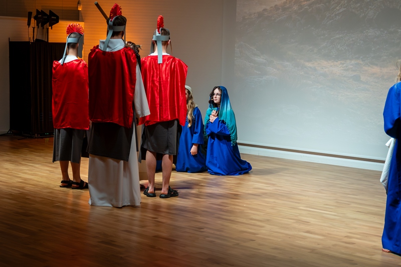 We wtorek 31 marca 2026 r. odbyło się niezwykłe widowisko — misterium Męki Pańskiej "Największa Miłość" w wykonaniu uczniów i nauczycieli naszej szkoły. Przedstawiało ono ostatnie chwile życia Jezusa Chrystusa — od wjazdu do Jerozolimy aż po ukrzyżowanie i zmartwychwstanie. Widowisko okazało się niezwykle poruszającym przeżyciem. Już od pierwszych chwil można było poczuć wyjątkową atmosferę skupienia i zadumy. Sceny były realistyczne i pełne emocji oraz jednocześnie opatrzone bogatą symboliką, a gra naszych aktorów sprawiała, że można było przenieść się w czasy wydarzeń biblijnych. Piękna muzyka podkreślała nastrój każdej sceny. Gra świateł i piękne obrazy budowały napięcie i nadawały symboliczny wymiar całemu widowisku. Dzięki temu wszystko tworzyło spójną i niezwykle piękną całość.