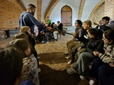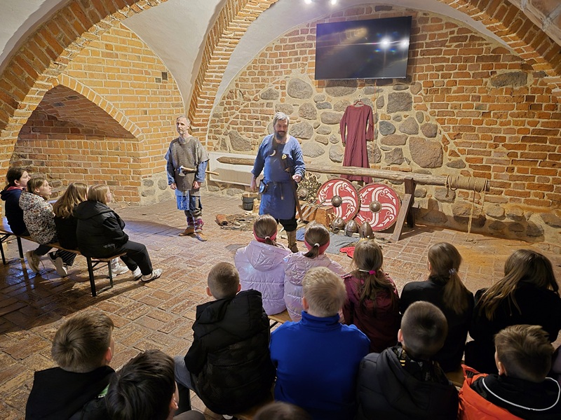 Pierwszy dzień wycieczki klas IV i V do zamku w Golubiu-Dobrzyniu upłynął bardzo intensywnie. W poniedziałek 13 kwietnia 2026 r po przyjeździe do miejsca docelowego powitał nas wystrzał z armaty. Niemalże zaraz po zakwaterowaniu i obiedzie wzięliśmy udział w warsztatach artystycznych, podczas których stworzyliśmy witrażyki. Potem odbyła się "żywa" lekcja historii o początkach naszego państwa poprowadzona przez wojów, którzy w bardzo obrazowy sposób przytoczyli zdarzenia dotyczące wspomnianej tematyki. A po krótkim spacerze i kolacji zwiedziliśmy zamek z lampionami w rękach. Zmęczeni, ale usatysfakcjonowani zakończyliśmy ten dzień naszej zielonej szkoły.