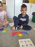 W dniu 9 września 2025 r. dzieci z oddziału przedszkolnego odkrywały świat tangramów — chińskiej układanki rozwijającej wyobraźnię, logiczne myślenie i spostrzegawczość. Przedszkolaki z zapałem tworzyły zwierzątka, domki, statki i wiele innych kształtów. Każdy układ był wyjątkowy i pokazał, jak wiele radości daje kreatywne odkrywanie. Brawo dla naszych małych konstruktorów!