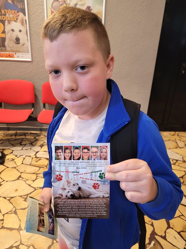 Korzystając z oferty Kina Osiedlowego, w dniu 11 września 2025 r. nasze klasy IV i V wraz z nauczycielami wybrały się na seans filmu "O psie, który jeździł koleją 2". Piękna historia o przyjaźni, niesieniu pomocy oraz wartości rodziny poruszyła nasze serca. Wzruszająca opowieść sprawiła, że niektórym nawet kapnęła łezka.