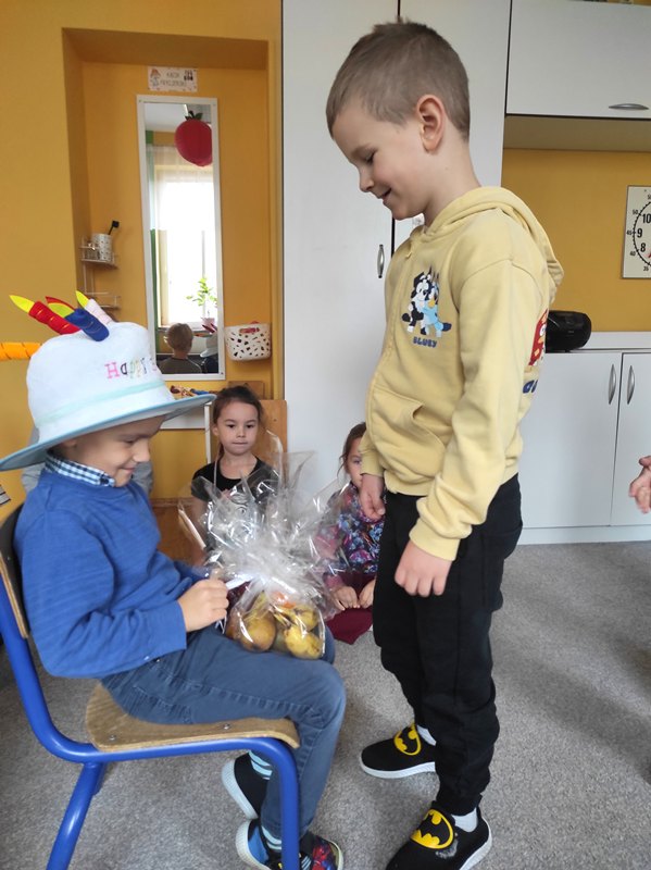 Dnia 21 października 2025 r. w zerówce obchodził je Jeremiasz Stańczyk. Koleżanki, koledzy oraz panie wychowawczynie zaśpiewali jubilatowi "Życzymy, życzymy…", złożyli życzenia, by w jego życiu były zawsze obecne uśmiech, radość i zdrowie. Jeremiasz pełny szczęścia w podziękowaniu poczęstował wszystkich słodkimi niespodziankami.
