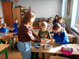 Pani Monika Grzywacz czytała uczniom pełną ciepła i czułości piękną historię o rodzinie, która przygotowuje się na pojawienie się siódmego dziecka. Ma ona wiele przygód i sporo interesujących wydarzeń dzieje się podczas tych dziewięciu miesięcy. Słuchaliśmy z zainteresowaniem lektury. Połowa poznanej fabuły jest już za nami. Ostatnią część historii posłuchamy w następnym tygodniu.