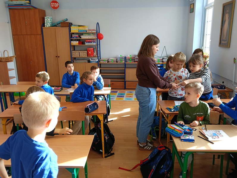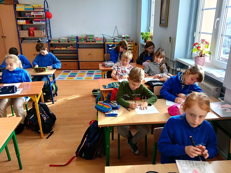 Drugoklasiści potem wypełniali barwami kolorowanki o dużej rodzinie, a następnie pani bibliotekarka szkolna, zachęcając uczniów do czytania, dała wszystkim swoiste zadanie domowe, aby uczniowie sięgnęli w domu po ulubione książki, czytali je. Z tej okazji wręczyła dzieciom zakładki do książek. Taka lekcja ma na celu jeszcze bardziej inspirować dzieci do czytania, które uczy koncentracji, wzbogaca słownictwo, rozwija wyobraźnię, wpływa na rozwój i daje wiele, wiele innych korzyści.