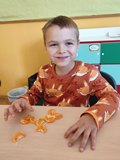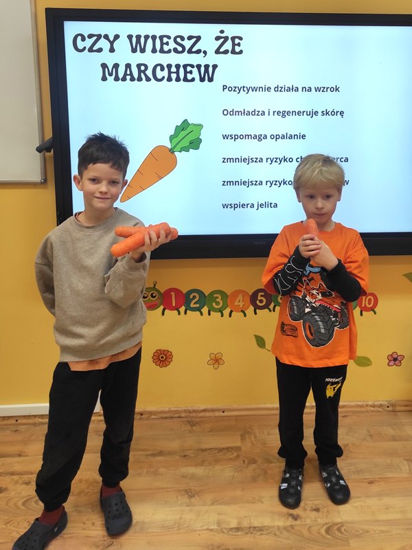 Dzieci poznały owoce i warzywa w tym kolorze oraz dowiedziały się, jakie zdrowotne właściwości ma marchewka — nasza bohaterka dnia. Nie zabrakło też nauki przez zabawę, ponieważ podczas zajęć matematycznych przedszkolaki przeliczały, dodawały i porównywały te dary natury bogate w witaminy i błonnik.