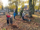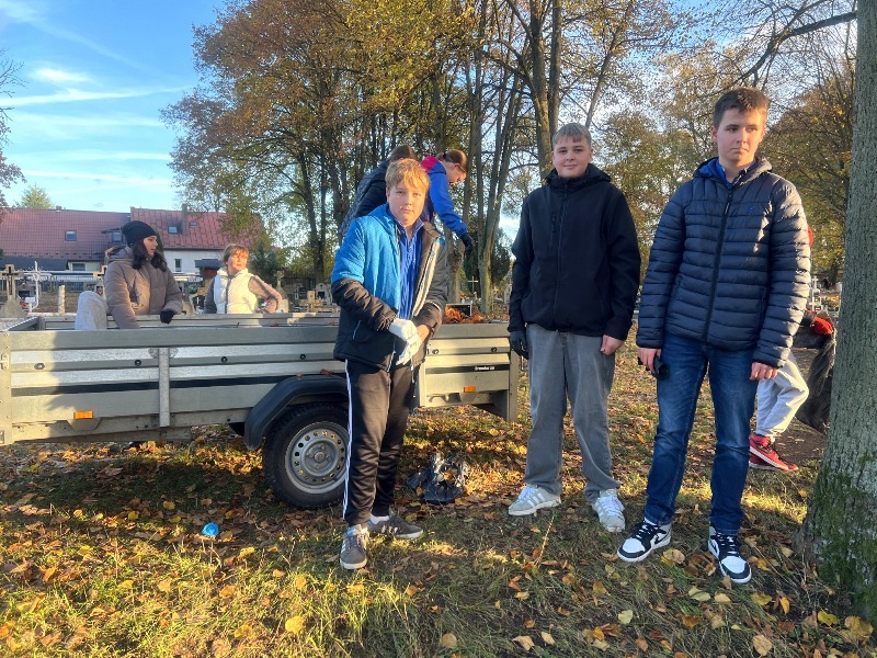 W środę 29 października 2025 r. uczniowie należący do Szkolnego Koła Wolontariatu wzięli udział w akcji sprzątania cmentarza parafialnego. W przedsięwzięciu uczestniczyli wybrani uczniowie z klas I–VIII. Wspólnie grabili liście, porządkowali alejki i groby. Na zakończenie wszyscy zebrani pomodlili się za dusze zmarłych. To była piękna lekcja troski, wspólnoty i pamięci o tych, którzy odeszli.