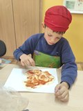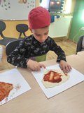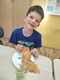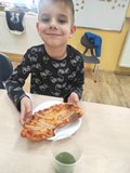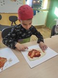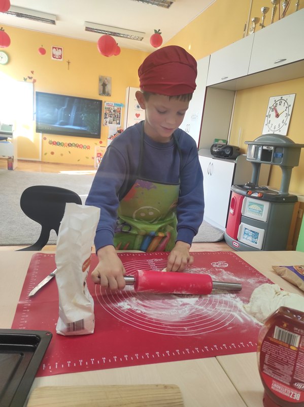 W piątek 31 października 2025 r. w naszym oddziale przedszkolnym zrobiło się bardzo smacznie! Dzieci zamieniły się w prawdziwych kucharzy i własnoręcznie przygotowały pyszną pizzę z serem i szynką. Było wałkowanie ciasta, smarowanie sosem, układanie składników i oczywiście — degustacja! To były zajęcia pełne radości, zapachu świeżo upieczonej pizzy i wspólnej zabawy!