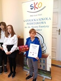 Dnia 6 listopada 2025 r. odbyło się podsumowanie tych eliminacji. I miejsce zajęła klasa I, z kolei na II miejscu znalazła się klasa II, a trzecie miejsce przypadło klasie VIIIb. Uczestnicy otrzymali dyplomy i nagrody. Wszystkie pozostałe klasy natomiast dostały nagrody pocieszenia. Nasze tematyczne gazetki oceniało jury — gościnnie przybyłe do szkoły panie pracowniczki PKO Banku Polskiego na czele z kierownik panią Marleną Lamparską. Analizowały prace według wytyczonych kategorii, np. brały pod uwagę treści merytoryczne, estetykę, subiektywną ocenę, czas poświęcony na zrealizowanie prezentacji oraz pomysłowość włożoną w jej wykonanie.