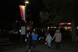 Po zakończeniu słuchowiska ruszyliśmy z lampionami w dłoniach. Nasze przejście rozbudzało mrok i mgłę kolorami wniesionymi przez nasz entuzjazm. W tym momencie mogliśmy sobie przypomnieć, że tradycja noszenia lampek procesyjnych sięga średniowiecza. Od wieków symbolizowały one dobro, które nie gaśnie nawet w ciemności i rozjaśnia je w nadziei dostrzeganej obecności Zmartwychwstałego — Nauczyciela miłości, dzielenia się z drugim.