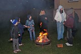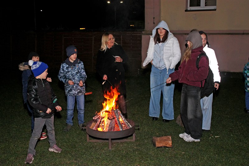 Na dziedzińcu szkoły czekały już paleniska. Płomienie igrały w płomienistych misach żeliwnych, a my przy akompaniamencie gitar i śpiewając patriotyczne pieśni, zamieniliśmy listopadowy chłód w muzyczne ciepło. Śpiewaliśmy o wolności i miłości do ojczyzny, podejmując wątki odnoszące się do naszej historii, było to echo Narodowego Święta Niepodległości, wciąż brzmiącego w naszej społeczności szkolnej. Zapach pieczonych kiełbasek mieszał się z aromatem świeżych rogalików świętomarcińskich, tak popularnych w naszym wielkopolskim regionie, i innych słodkości, a popcorn rozdawany przez Radę Rodziców znikał w błyskawicznym tempie i słychać było smakowite chrupanie. Wspólne chwile przy ogniu sprawiły, że słowa narratora z przedstawienia stały się dla nas żywe: "Dobro wraca — czasem w postaci uśmiechu, a czasem… rogalika!” Rzeczywiście marcińskie przysmaki stały się żywymi znakami radości, prostoty, a jednocześnie dobrego zaangażowania na rzecz innych, jak to już zapowiadała sama legenda.