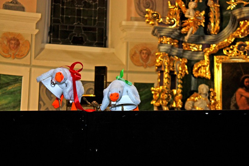 Przed oczami stanęły postacie z legendy o św. Marcinie. Dzięki teatrowi lalek opracowanemu przez polonistkę p. Marzenę Felsmann przenieśliśmy się do IV w. Pochłonął nas świat, gdzie drewno, bohaterowie z masy solnej i tkaniny ożyły pod wprawnymi dłońmi naszych młodych animatorów. Uśmiechnięty żołnierz z mieczem w dłoni, rozmarzony żebrak drżący z zimna, gęgające gęsi o nieco komicznym wdzięku — wszystko to tworzyło barwną mozaikę dramatycznych emocji. Kiedy Marcin rozciął swój płaszcz i oddał połowę biedakowi, wielu z nas poczuło, że ta scena ma w sobie coś więcej niż tylko gest. Stanowiła bowiem symbol podzielenia się sobą. Dowiedzieliśmy się, że żołnierz rzymski ujrzał Jezusa okrytego tą samą połówką płaszcza. Potem już tylko gęsi z entuzjazmem "zdradziły" ukrywającego się Marcina. Może właśnie w tej scenie kryje się morał: nawet ptaki potrafią rozpoznać dobro, gdy je spotkają...
