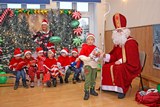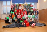 W międzyczasie cała społeczność szkolna, niezależnie od poziomu nauczania, kolejno od godz. 10.45 stanęła w kolejce do mikołajkowych zdjęć. Nieustający błysk lampy fotograficznej, sterty świątecznych gadżetów, reniferowe czapki oraz czerwone mikołajkowe nakrycia głowy w połączeniu ze specjalnym zimowym, świątecznym tłem do pozowania sprawiały, że nawet najbardziej powściągliwi z uśmiechem prezentowali swe wdzięki. Św. Mikołaj z nami pozował do fotografii, a potem obdarował nas niespodziankami. Dodatkowo z rąk Rady Rodziców naszej szkoły otrzymaliśmy aromatyczny popcorn, rozsiewający wszędzie miły zapach.